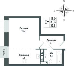 Продаётся студия в строящемся доме (Корпус 2), срок сдачи: II-кв. 2027, общей площадью 33.3 кв.м., на 3 этаже. ЖК "Киноквартал" , МО, г. Королев, мкр. Первомайский, ул. Солнечная, д. 2