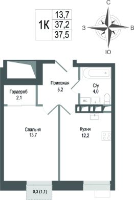 Продаётся 1-комнатная квартира в строящемся доме (Корпус 2), срок сдачи: II-кв. 2027, общей площадью 37.2 кв.м., на 3 этаже. ЖК "Киноквартал" , МО, г. Королев, мкр. Первомайский, ул. Солнечная, д. 2