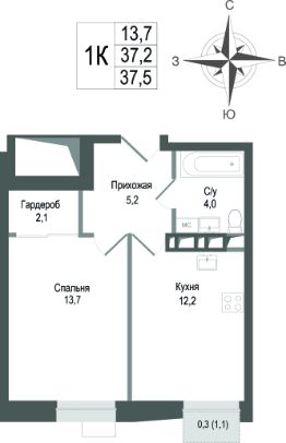 Продаётся 1-комнатная квартира в строящемся доме (Корпус 2), срок сдачи: II-кв. 2027, общей площадью 37.2 кв.м., на 4 этаже. ЖК "Киноквартал" , МО, г. Королев, мкр. Первомайский, ул. Солнечная, д. 2