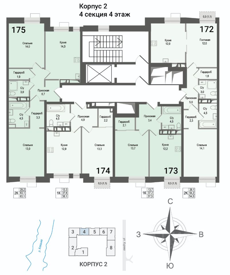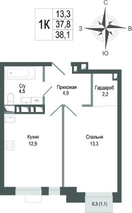 Продаётся 1-комнатная квартира в строящемся доме (Корпус 2), срок сдачи: II-кв. 2027, общей площадью 37.8 кв.м., на 4 этаже. ЖК "Киноквартал" , МО, г. Королев, мкр. Первомайский, ул. Солнечная, д. 2