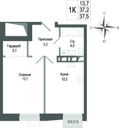 Продаётся 1-комнатная квартира в строящемся доме (Корпус 2), срок сдачи: II-кв. 2027, общей площадью 37.2 кв.м., на 6 этаже. ЖК "Киноквартал" , МО, г. Королев, мкр. Первомайский, ул. Солнечная, д. 2