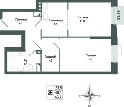 Продаётся 2-комнатная квартира в строящемся доме (Корпус 2), срок сдачи: II-кв. 2027, общей площадью 46.4 кв.м., на 3 этаже. ЖК "Киноквартал" , МО, г. Королев, мкр. Первомайский, ул. Солнечная, д. 2