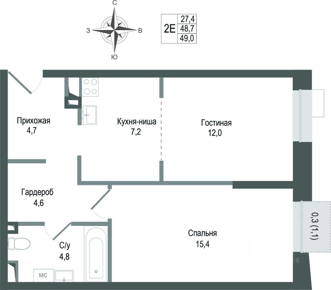 48,7 м²