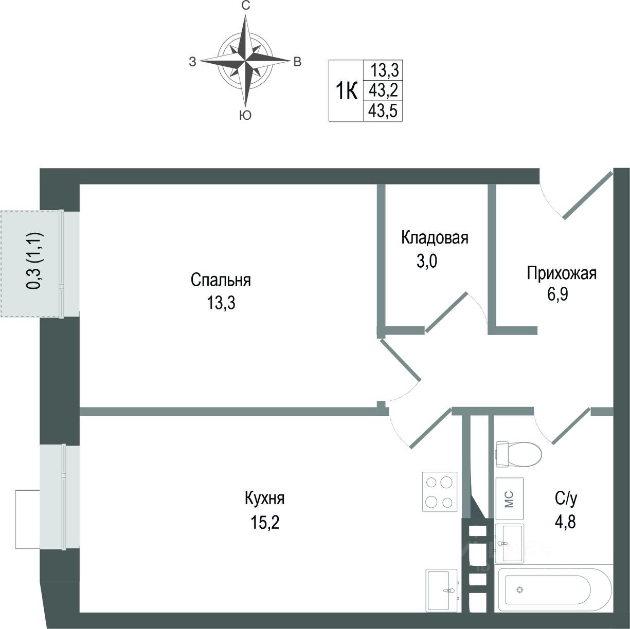 43,2 м²