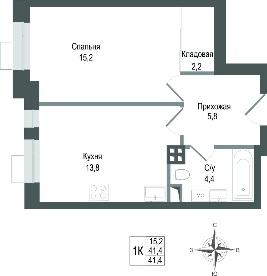 41,4 м²