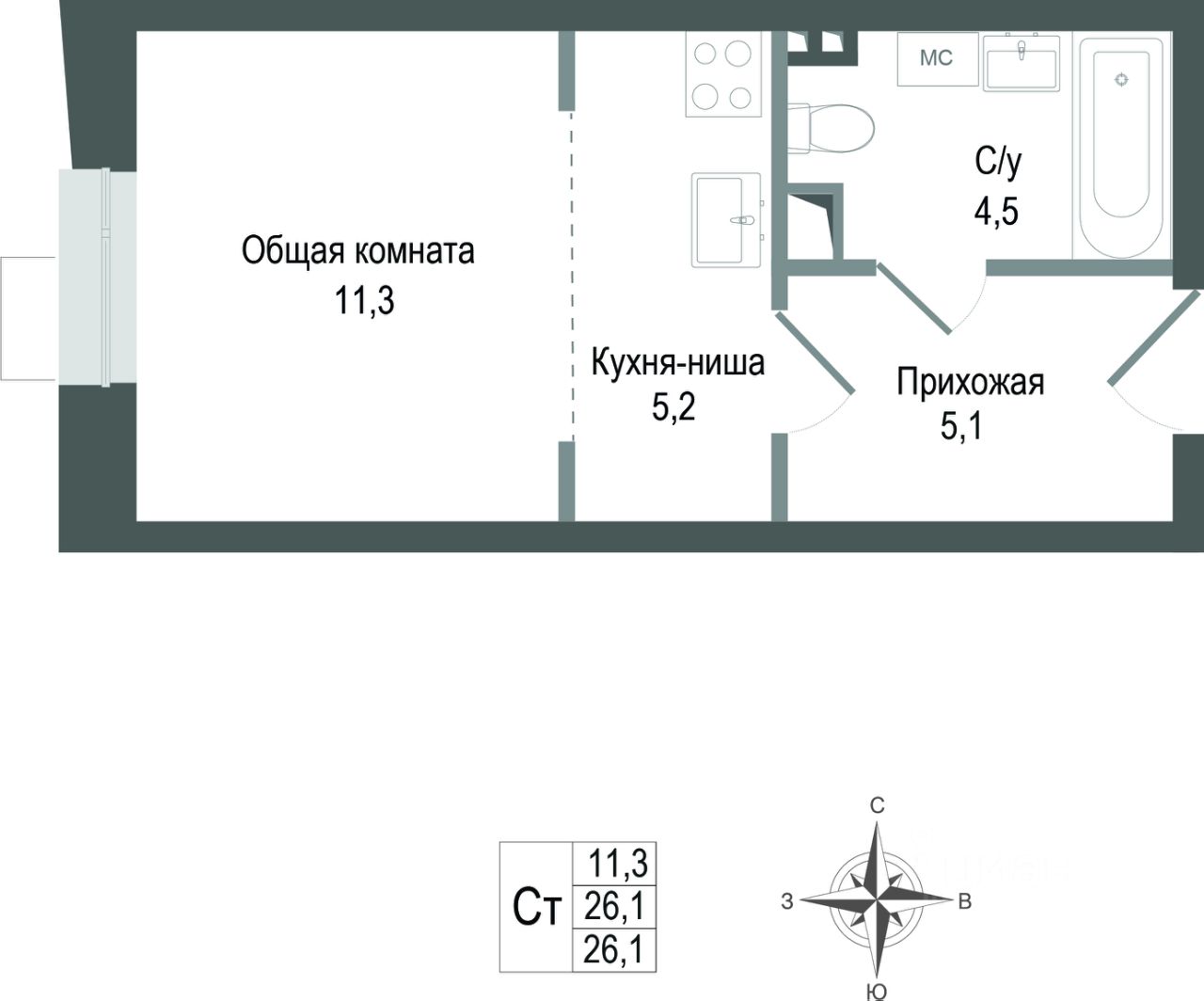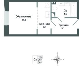 Продаётся студия в строящемся доме (Корпус 2), срок сдачи: II-кв. 2027, общей площадью 26.1 кв.м., на 3 этаже. ЖК "Киноквартал" , МО, г. Королев, мкр. Первомайский, ул. Солнечная, д. 2