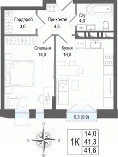 Продается 1-комнатная квартира 22 в строящемся ЖК "КИНОКВАРТАЛ", Корпус 1. Квартира расположена на 5 этаже, общая площадь 41,1 кв.м.