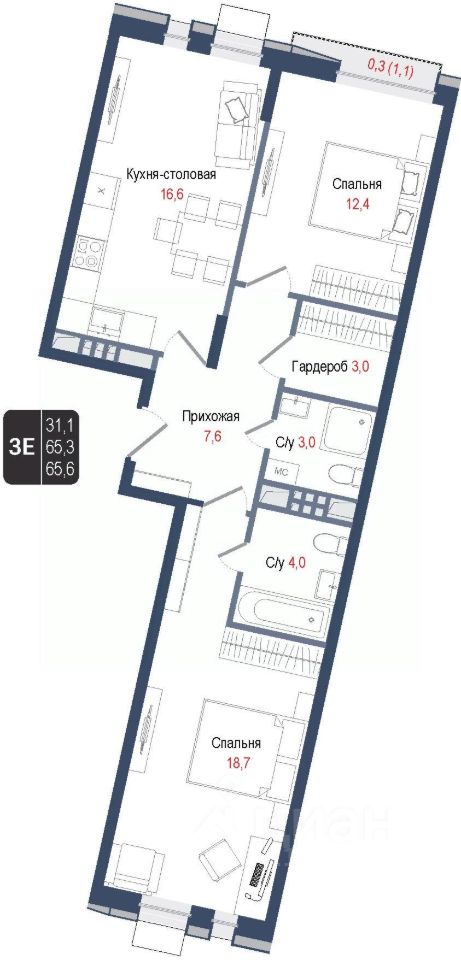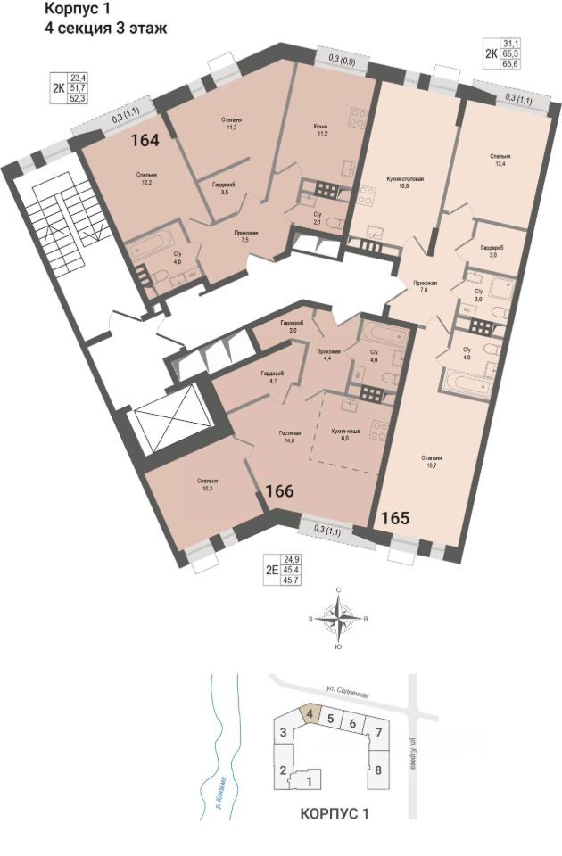 Продается 2-комнатная квартира 165 в строящемся ЖК "КИНОКВАРТАЛ", Корпус 1. Квартира расположена на 3 этаже, общая площадь 65,3 кв.м.