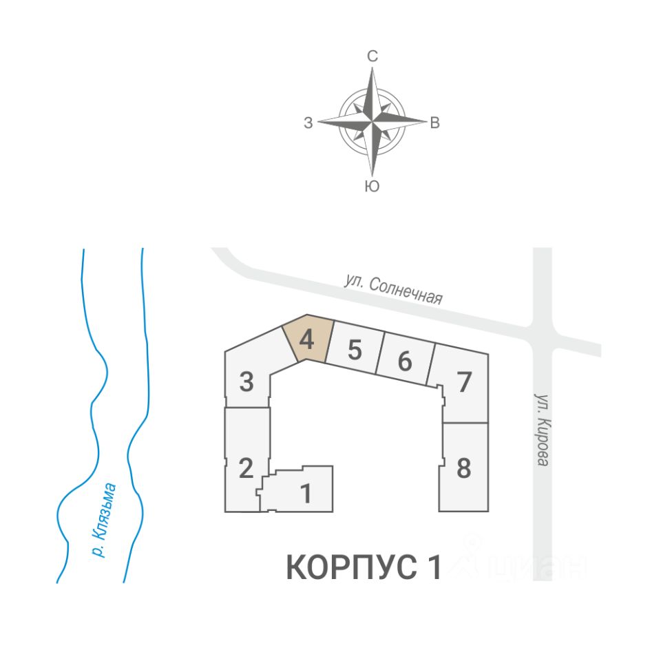 Дом находится в тихом зеленом районе города, на берегу реки Клязьмы. Невысокая этажность, секции от 4 до 8 этажей, все оснащены лифтом. Авторская архитектура, безбарьерная среда, функциональные планировки классического и евро-формата, есть уникальные форматы — квартиры в 2-х уровнях. В ряде квартир потолки выше 3-х метров, панорамные окна, "французские балконы". Каждый может выбрать что-то своё — жизнь с видом на реку или на красивый закрытый двор "без машин".