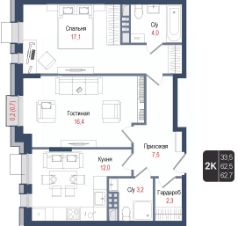 Продается 2-комнатная квартира 218 в строящемся ЖК "КИНОКВАРТАЛ", Корпус 1. расположена на 2 этаже, общая площадь 62,5 кв.м.