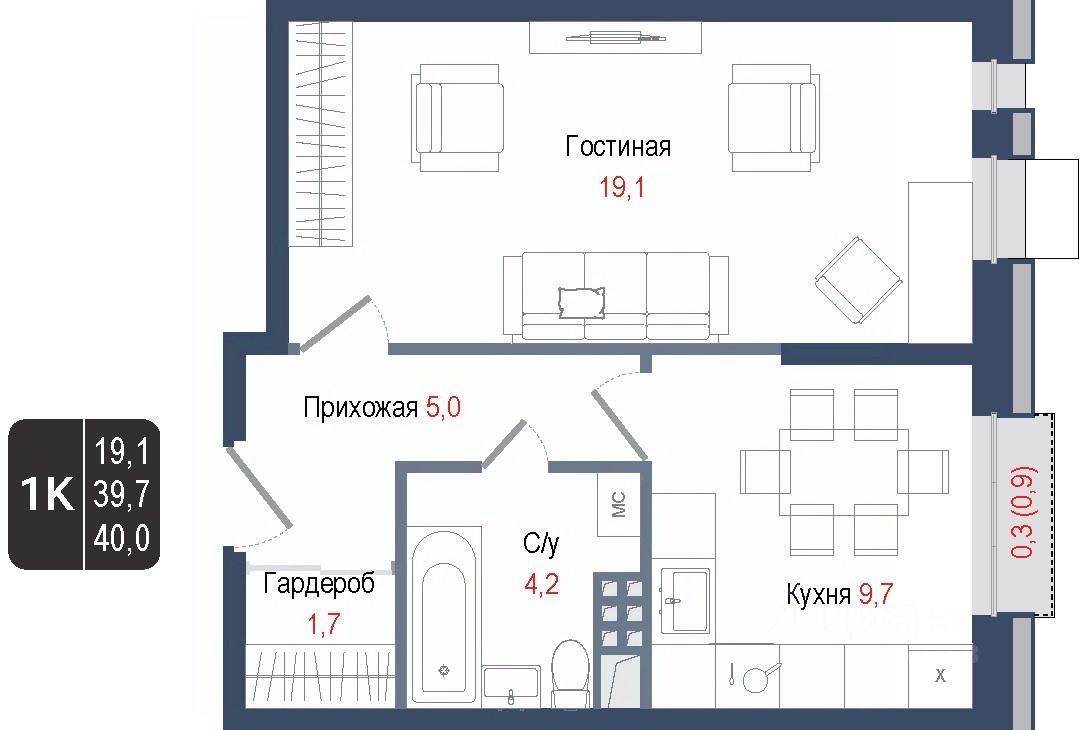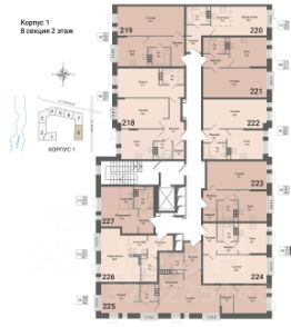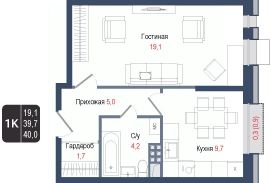 Продается 1-комнатная квартира 223 в строящемся ЖК "КИНОКВАРТАЛ", Корпус 1. Квартира расположена на 2 этаже, общая площадь 39,7 кв.м.