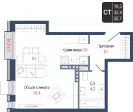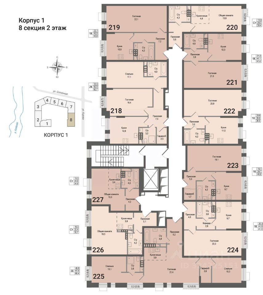 Продается квартира-студия 226 в строящемся ЖК "КИНОКВАРТАЛ", Корпус 1. Квартира расположена на 2 этаже, общая площадь 32,4 кв.м.