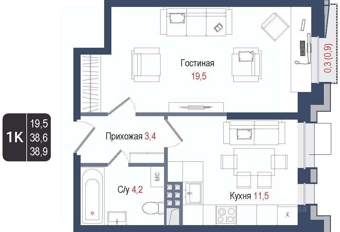 Продается 1-комнатная квартира 232 в строящемся ЖК "КИНОКВАРТАЛ", Корпус 1. Квартира расположена на 3 этаже, общая площадь 38,6 кв.м.