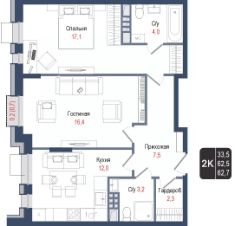 Продается 2-комнатная квартира 238 в строящемся ЖК "КИНОКВАРТАЛ", Корпус 1. Квартира расположена на 4 этаже, общая площадь 62,5 кв.м.