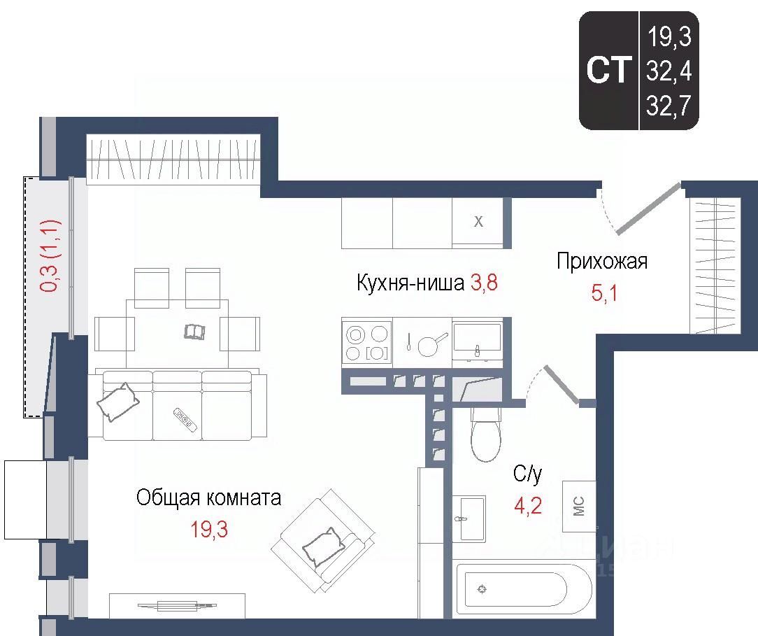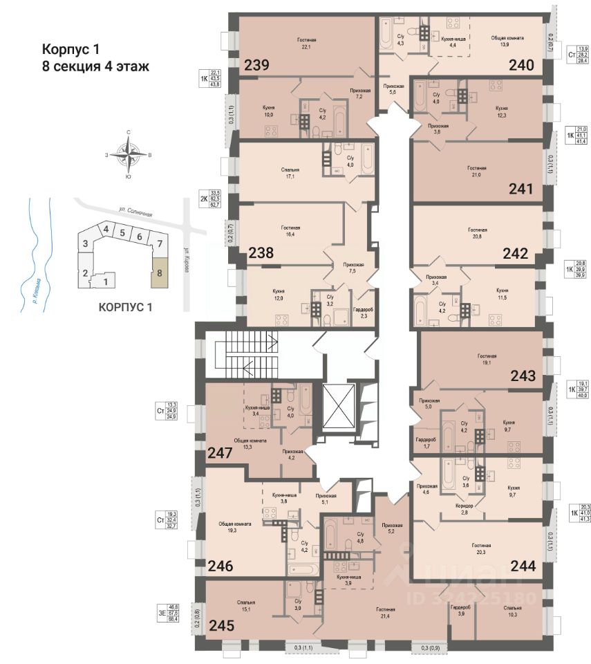 Продается квартира-студия 246 в строящемся ЖК "КИНОКВАРТАЛ", Корпус 1. Квартира расположена на 4 этаже, общая площадь 32,4 кв.м.