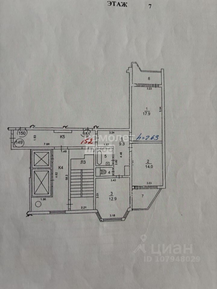 Арт. 127000886 Просторная и комфортная двухкомнатная квартира на 7 этаже 17-этажного дома серии П44-Т по адресу: г. Королев, ул. Горького, д. 12а, подъезд 3.
