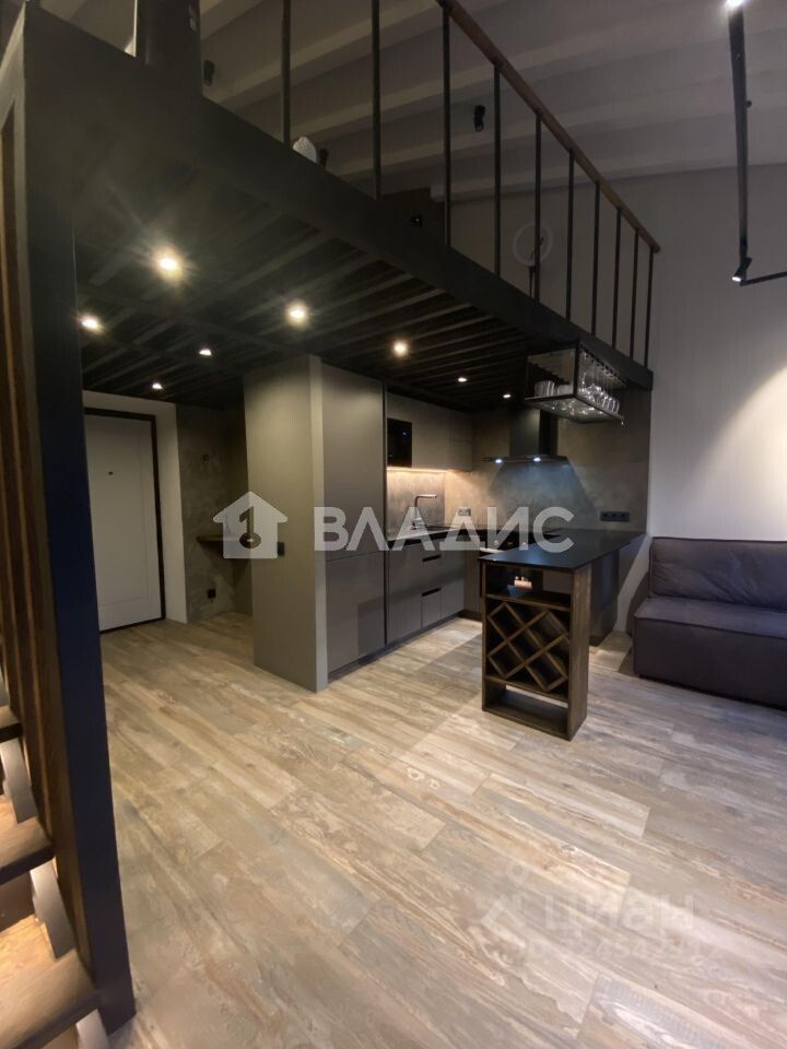 Студия имеет общую площадь 28 квадратных метров, из которых 20 квадратных метров — жилая площадь. Кухня занимает 4 квадратных метра. Дизайнерский ремонт позволяет сразу заехать и жить, не тратя время и средства на дополнительные отделочные работы.