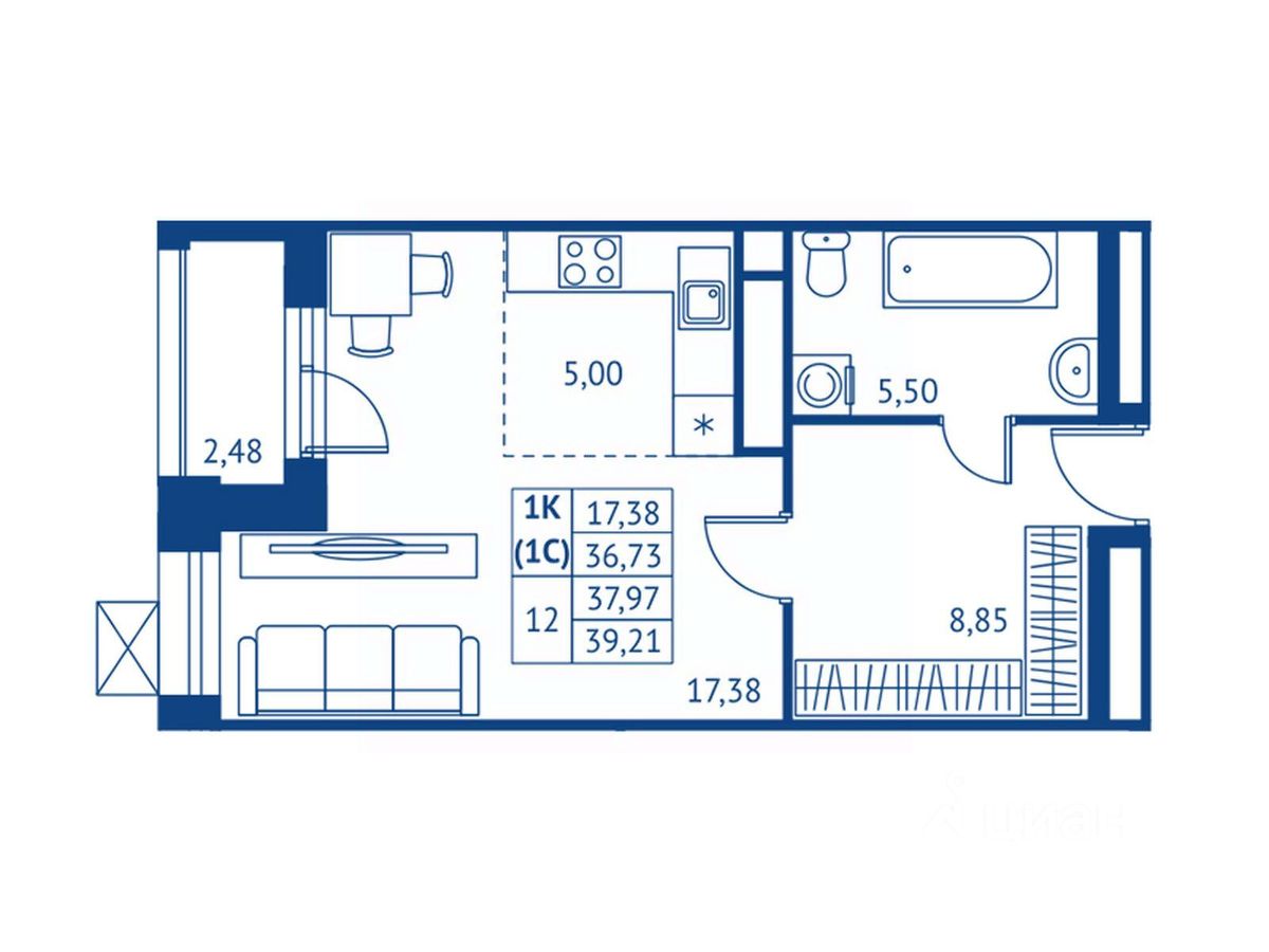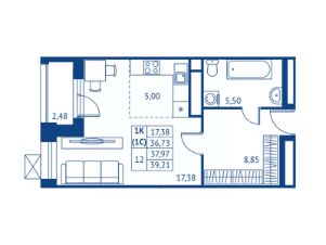 36,73 м²