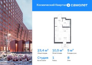 Строим кварталы для жизни с заботой о будущем. Предлагается квартира студия комфорт-класса 23,36 кв.м в корпусе 1 на 8 этаже, в ЖК "Космический Квартал"