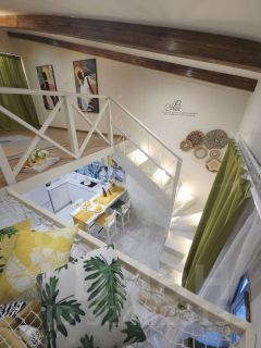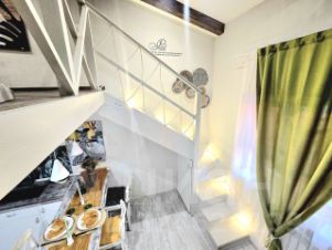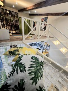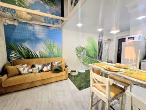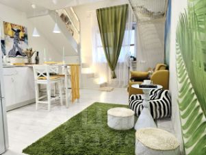 Квартира расположена на 4 этаже (мансардный). Высота потолков от 3 до 5,5 метров, возведен 2-й этаж ( не внесён в ЕГРН). Общая площадь квартиры 41 м2 с учетом 2 этажа. На 1 эт. гостиная, кухня, санузел, на 2 эт. спальная зона, гардеробная ниша, гамак для отдыха. В квартире остается мебель и техника.