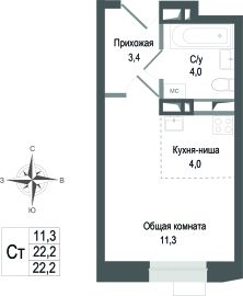 Продаётся студия в строящемся доме (Корпус 2), срок сдачи: II-кв. 2027, общей площадью 22.2 кв.м., на 6 этаже. ЖК "Киноквартал" , МО, г. Королев, мкр. Первомайский, ул. Солнечная, д. 2
