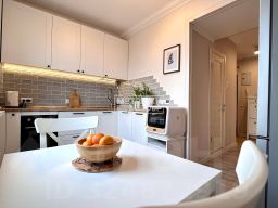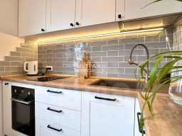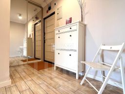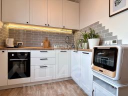 Квартира расположена на 15м этаже 17этажного панельного дома, построенного в 2018 году; её общая площадь составляет 37,6 кв. м, включая 10 кв. м жилой площади и 16 кв. м просторной кухни. В помещении выполнен дорогой качественный ремонт, имеется вся необходимая мебель и техника — можно заезжать и жить сразу после оформления сделки.