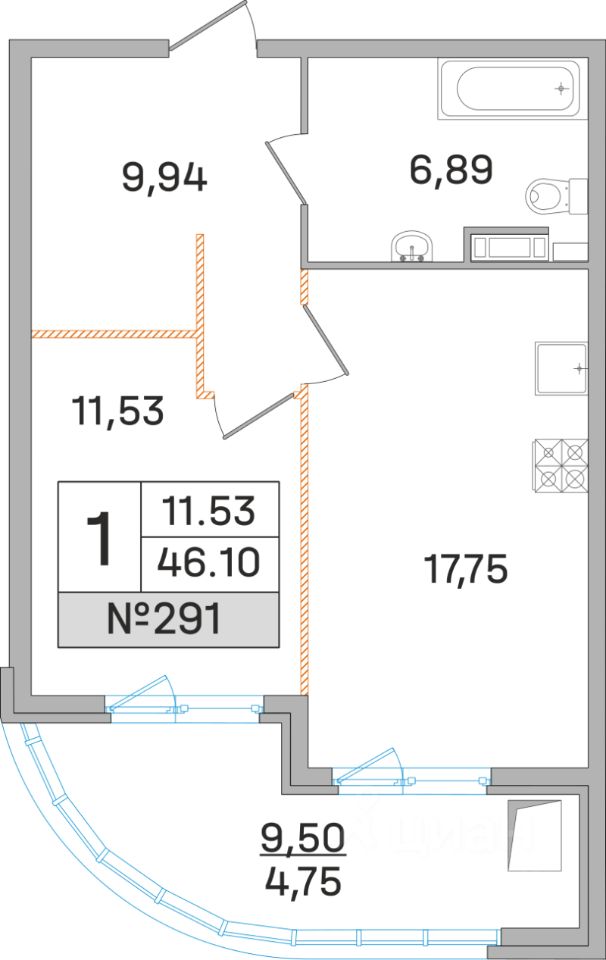 Продаётся 1-комнатная квартира в сданном доме (Калинина, 11 ), срок сдачи: IV-кв. 2024, общей площадью 46.3 кв.м., на 16 этаже. Завершение строительства недостроенного общественножилого комплекса со встроенной общественной частью и встроеннопристроенной подземной автостоянкой.