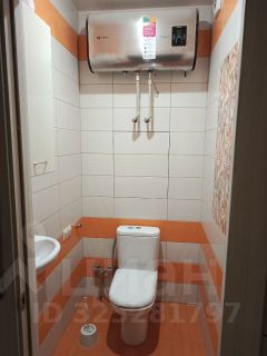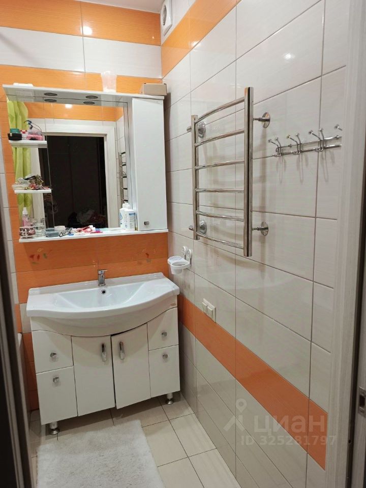 На большой прямоугольной кухне встроенные шкафы с доводчиками blum, варочная панель Bosh, а также есть духовка, вытяжка, большой холодильник LG и стиральная машина Ariston. В прихожей, коридоре и спальне размещены встроенные шкафы, выполненные на заказ под размеры помещений. Ванная комната и туалет отделаны плиткой в едином ярко-оранжевом стиле, оборудованы гарнитуром и просторной ванной 1,7м. В туалете размещен бойлер на 80л, что удобно в плановых отключениях горячей воды летом. Лоджия оборудована полками под хранение крупногабаритных предметов. Встроенная мебель остается покупателю.