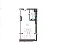 Общая площадь 31.4 метр (по БТИ), комфортная комната - 17 метров, функциональная кухня - 10,5 метров, совмещенный санузел, окна ПВХ.