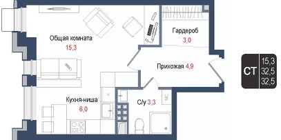 Продается квартира-студия 207 в строящемся ЖК "КИНОКВАРТАЛ", Корпус 1. Квартира расположена на 3 этаже, общая площадь 32,5 кв.м.
