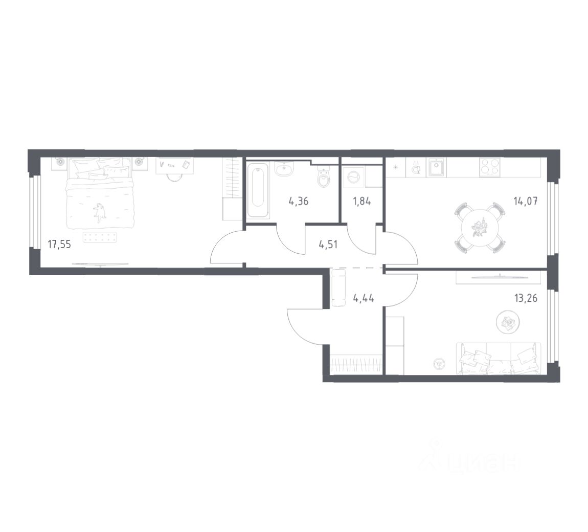 Строим кварталы для жизни с заботой о будущем. Предлагается 2-комнатная квартира комфорт-класса площадью 60,03 кв.м в корпусе 1 на 13-м этаже, в жилом комплексе "Космический Квартал".