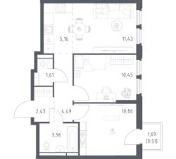 50,9 м²