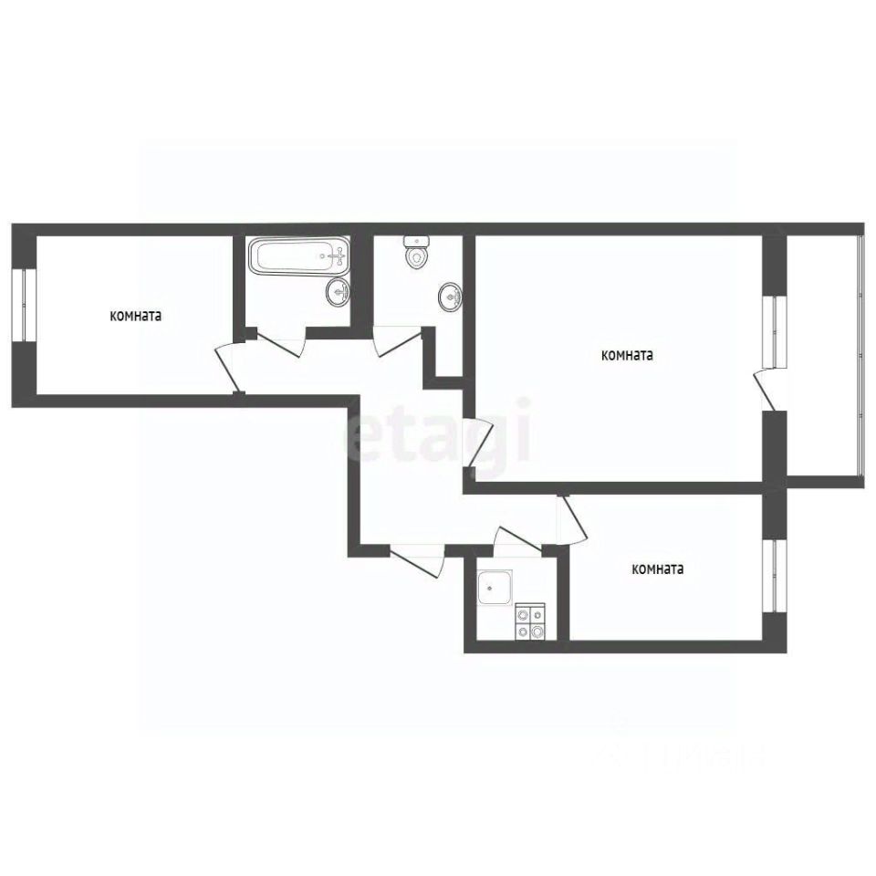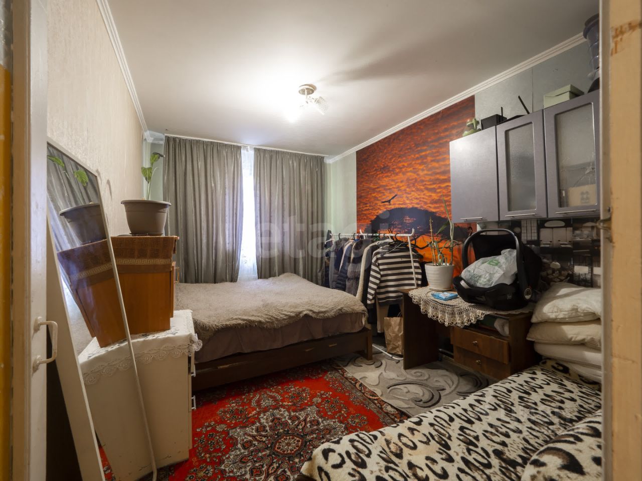 Двух комнатная квартира, с двумя разделенными комнатами и небольшой кухней. Мебель и техника все остается