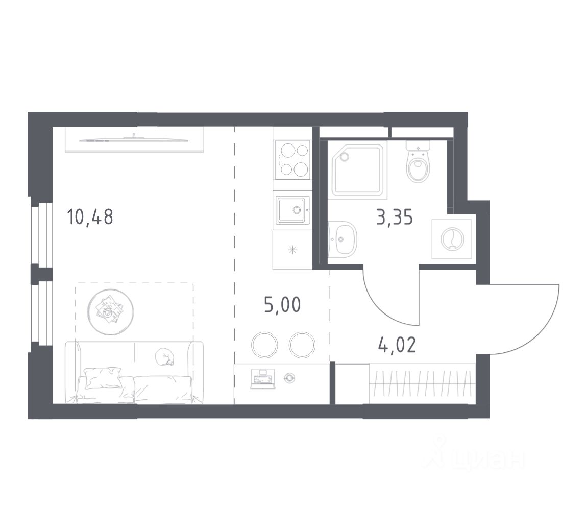 Строим кварталы для жизни с заботой о будущем. Предлагается студия комфорт-класса площадью 22,85 кв.м в корпусе 1 на 6-м этаже, в жилом комплексе "Космический Квартал".