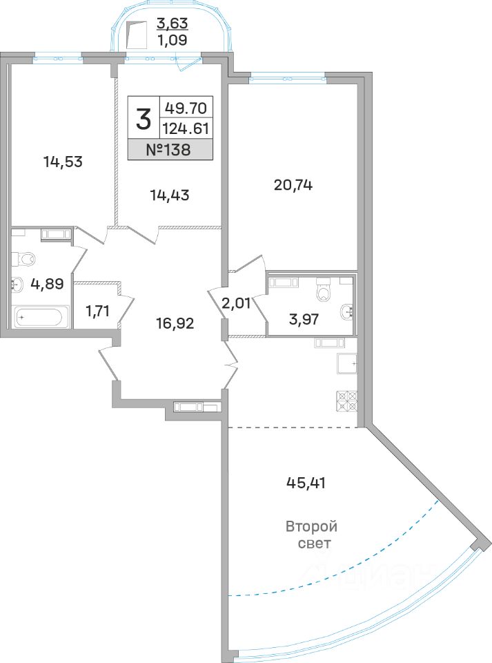 Жилая часть дома начинается с пятого этажа, поэтому 95% квартир в проекте — видовые. Квартиры просторные, со свободными планировками, которые каждый может обустроить на свой вкус: запроектировать кухни-гостиные со столовыми зонами, гардеробные, места для систем хранения, детские и спальни. Потолки высотой 2,9 метра делают каждую квартиру еще комфортнее и светлее. На 17 и 18 этажах расположены квартиры со вторым светом.