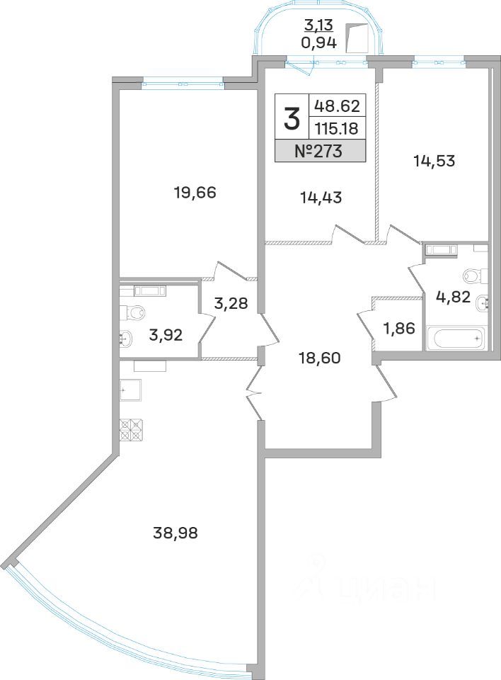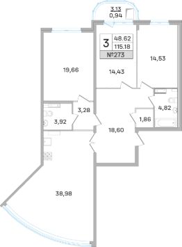 Продаётся 3 - комнатная квартира в готовом доме (Калинина, 11), срок сдачи: Дом сдан, общей площадью 118.60 кв.м., на 15 этаже.