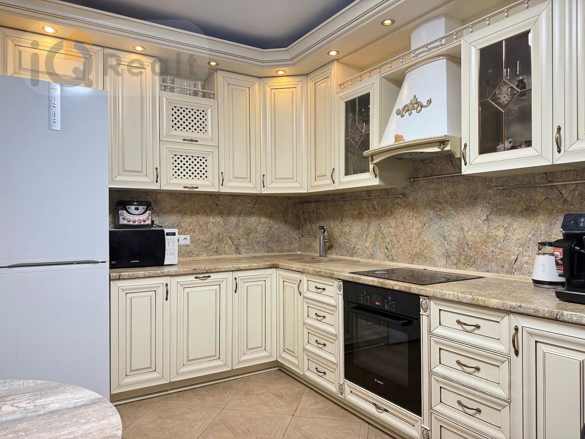 В квартире установлены: теплые полы, электрика разведена с установкой электрощита с автоматами, кондиционер. Дорогая кухня из массива дерева.