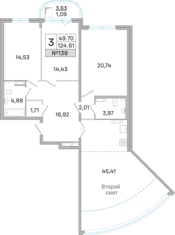 Продаётся 3-комнатная квартира в сданном доме (Калинина, 11 ), срок сдачи: IV-кв. 2024, общей площадью 122.1 кв.м., на 17 этаже. Завершение строительства недостроенного общественножилого комплекса со встроенной общественной частью и встроеннопристроенной подземной автостоянкой.