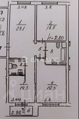 Высота потолков — 2,8 м.