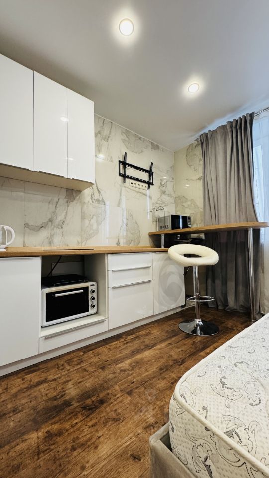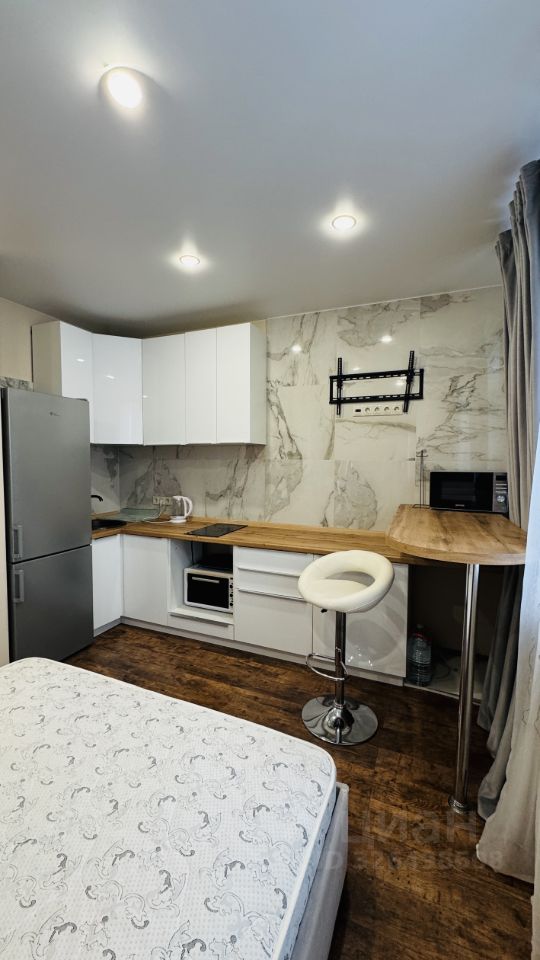 Продаются современные апартаменты-студия в монолитном доме 2020 года постройки. Общая площадь — 25 кв. м, жилая — 15 кв. м. Апартаменты расположены на 14 этаже.