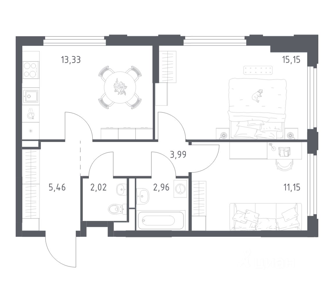 Квартиры комплекса — на выбор: могут быть как с отделкой, так и без. В случае с готовой отделкой в комнатах и прихожей уже будут обои, натяжные потолки и ламинат, а в санузлах — керамогранит на полу и керамическая плитка на стенах. Мы подведем все коммуникации и установим сантехнику. Светлые тона визуально делают комнаты еще просторнее. Вы легко воплотите любые идеи по обустройству и создадите интерьер в современном или классическом стиле. Можно сразу заказать кухню, комплекты мебели, светильники, декор и даже посуду в нашем маркетплейсе — мы полностью подготовим квартиру к новоселью.