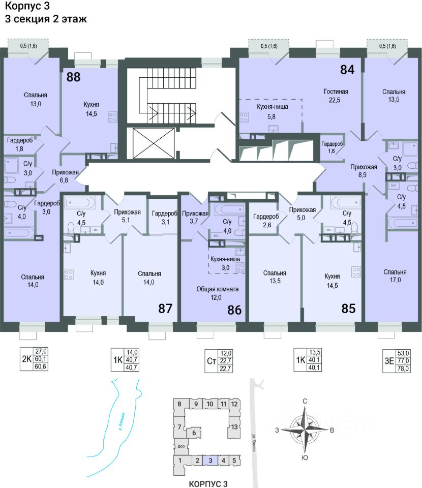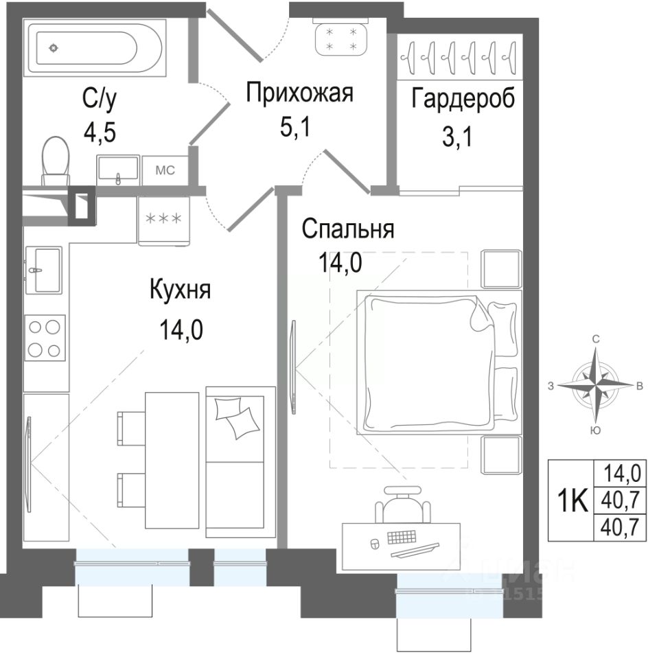 Продаётся 1-комнатная квартира в строящемся доме (Корпус 3), срок сдачи: II-кв. 2028, общей площадью 40.7 кв.м., на 2 этаже. ЖК "Киноквартал" , МО, г. Королев, мкр. Первомайский, ул. Солнечная, д. 2