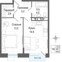 Продаётся 1-комнатная квартира в строящемся доме (Корпус 3), срок сдачи: II-кв. 2028, общей площадью 40.1 кв.м., на 3 этаже. ЖК "Киноквартал" , МО, г. Королев, мкр. Первомайский, ул. Солнечная, д. 2