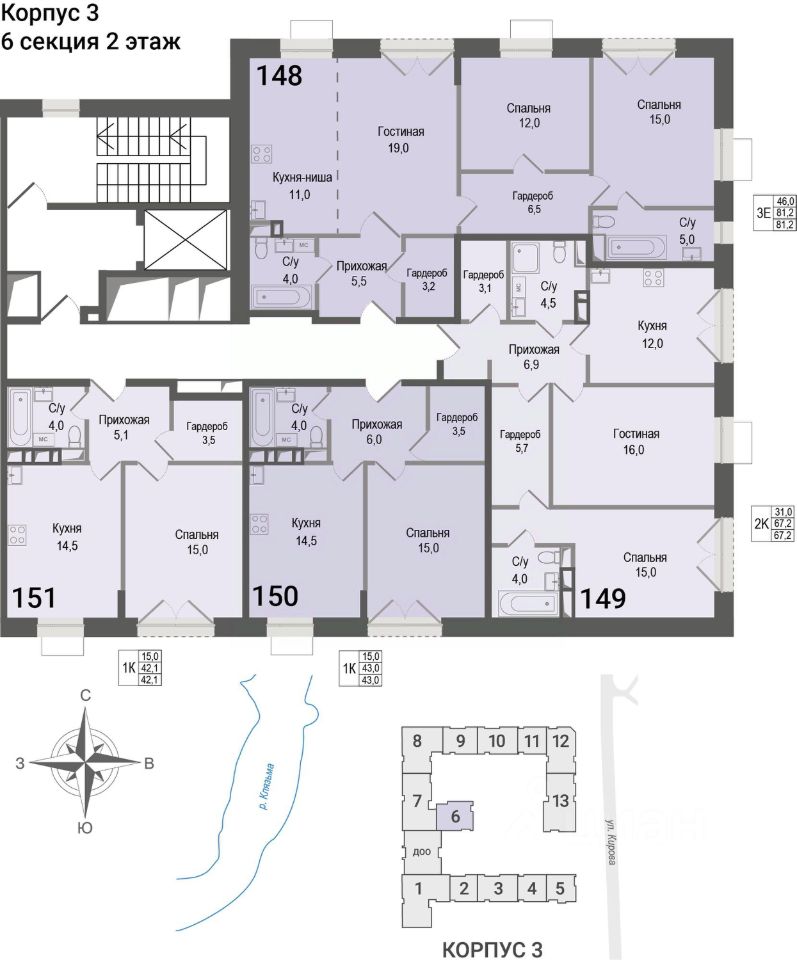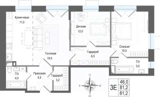 Продаётся 3-комнатная квартира в строящемся доме (Корпус 3), срок сдачи: II-кв. 2028, общей площадью 81.2 кв.м., на 2 этаже. ЖК "Киноквартал" , МО, г. Королев, мкр. Первомайский, ул. Солнечная, д. 2