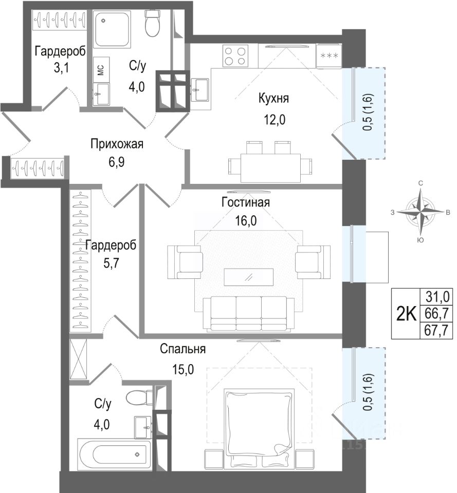 66,7 м²
