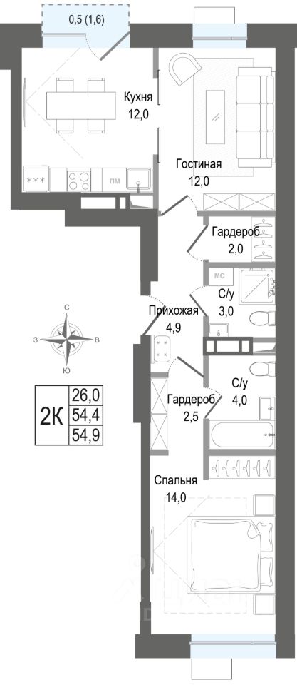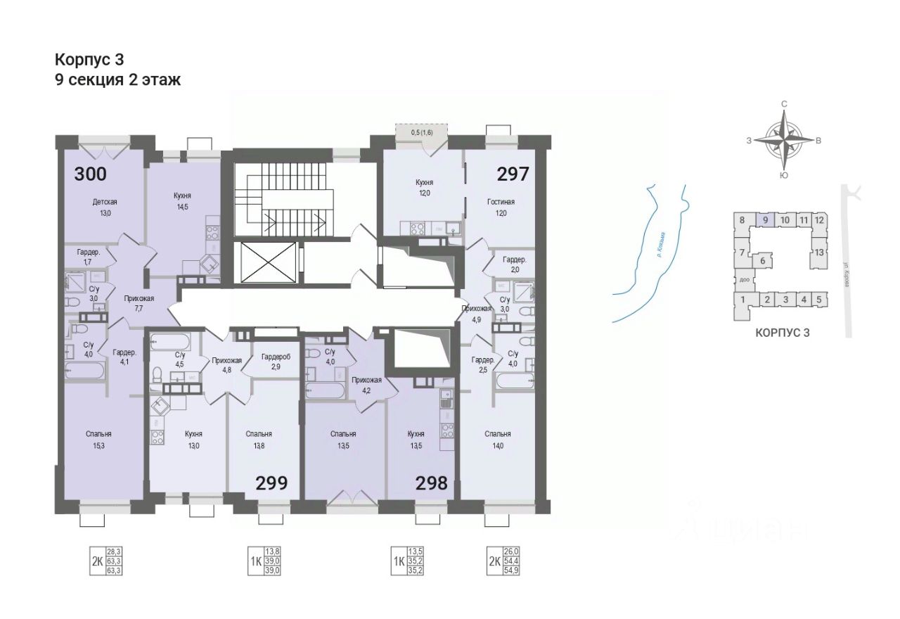 Продаётся 2-комнатная квартира в строящемся доме (Корпус 3), срок сдачи: II-кв. 2028, общей площадью 54.4 кв.м., на 2 этаже. ЖК "Киноквартал" , МО, г. Королев, мкр. Первомайский, ул. Солнечная, д. 2