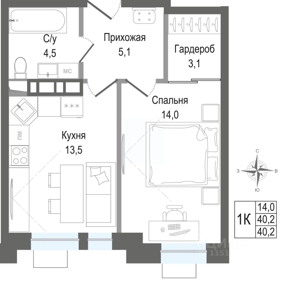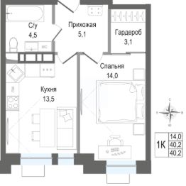 Продаётся 1-комнатная квартира в строящемся доме (Корпус 3), срок сдачи: II-кв. 2028, общей площадью 40.2 кв.м., на 3 этаже. ЖК "Киноквартал" , МО, г. Королев, мкр. Первомайский, ул. Солнечная, д. 2