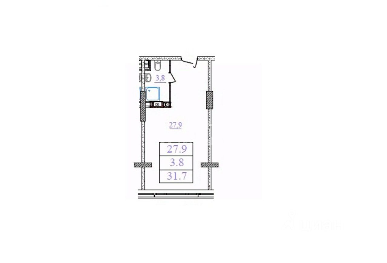 Общая площадь 31.7 метр (по БТИ), комфортная комната - 17 метров, функциональная кухня - 10,5 метров, совмещенный санузел, окна ПВХ.
