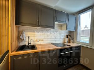 Кухню делали под заказ, есть посудомойка, плита и духовой шкаф, на кухне также встроен большой шкаф для хранения бытовых принадлежностей.