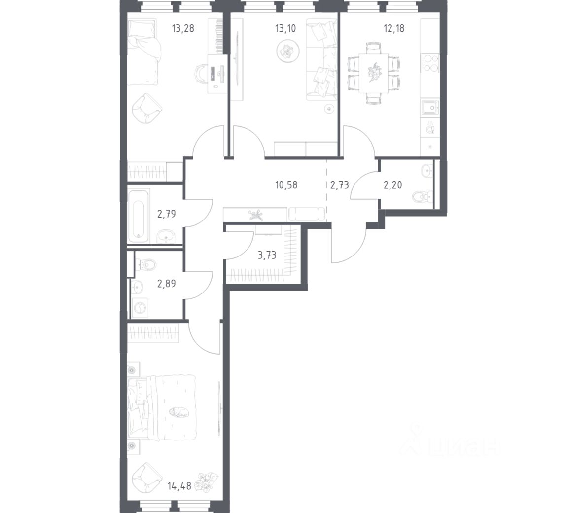 Строим кварталы для жизни с заботой о будущем. Предлагается 3-комнатная квартира комфорт-класса площадью 77,96 кв.м в корпусе 1 на 3-м этаже, в жилом комплексе "Космический Квартал".